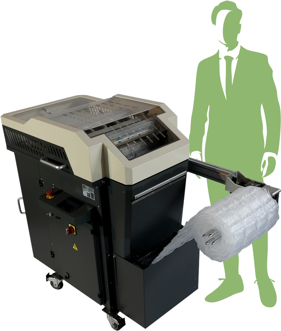 3PL-Dienstleister-, eCommerce-, Elektronik-, Pharma-, Automobil- und Konsumgüterindustrie verpacken sicher und wirtschaftlich mit der RP42 Luftpolstermaschine.